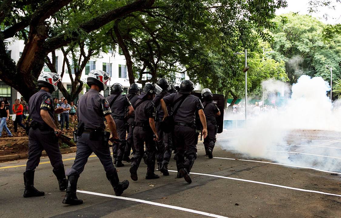Um protesto de estudantes e trabalhadores da Universidade de São Paulo (USP) contra um pacote com medidas de reestruturação proposto pelo reitor Marco Antonio Zago terminou em confronto com a tropa de choque da Polícia Militar, que usou bombas dentro do campus, no Butantã, zona norte de São Paulo.