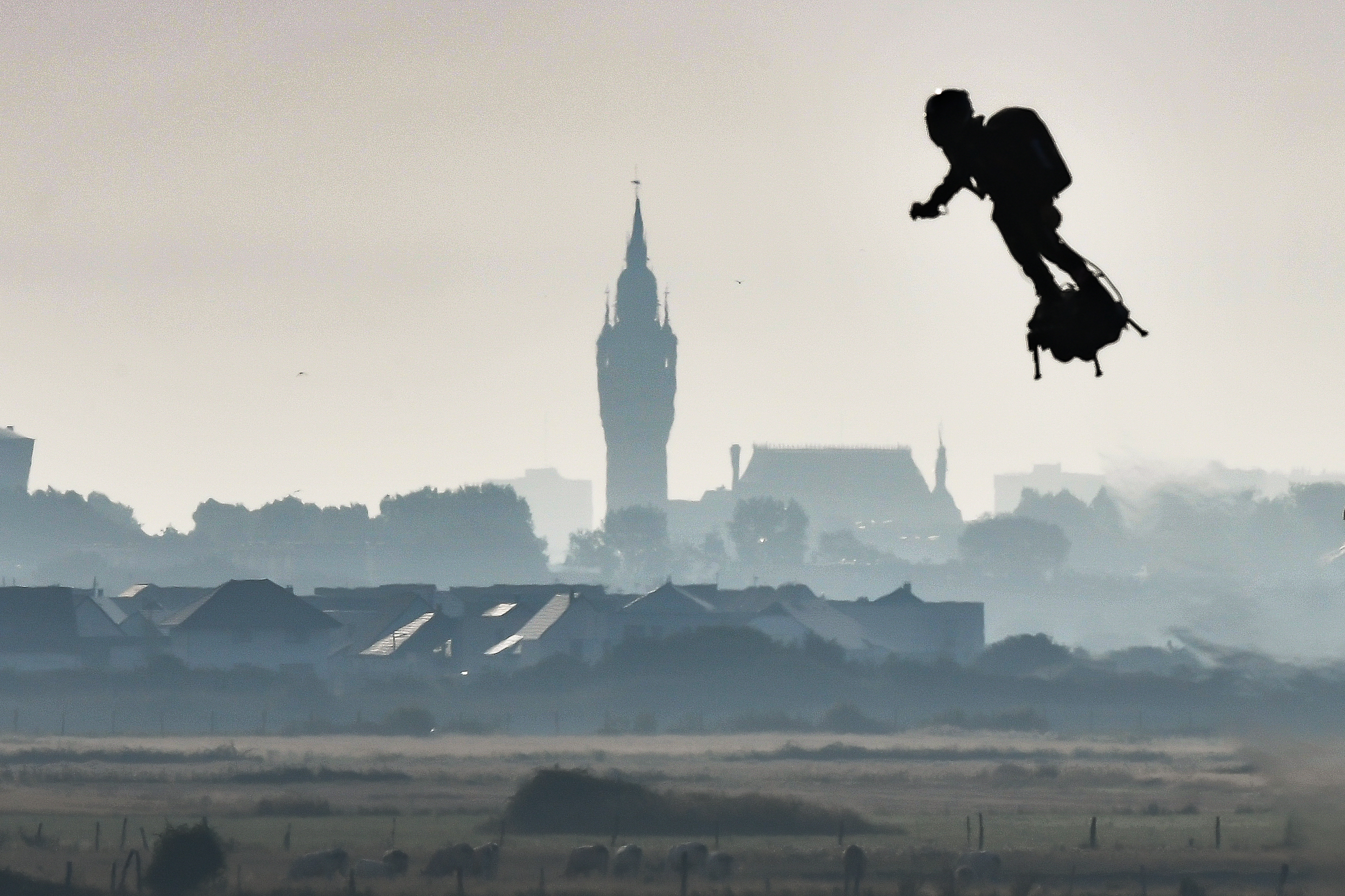 O inventor, ex-campeão mundial e europeu de jet ski, fez o trajeto de 35 km escoltado por três helicópteros. A “prancha voadora” é um dispositivo voador autônomo alimentado por querosene armazenado em uma mochila, está equipado com cinco mini-turborreatores, que permitem atingir uma velocidade de até 190 km/h durante dez minutos.