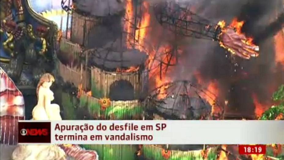 Confusão – Do lado de fora do Sambódromo, a confusão continuou por algumas horas. Dispersos pela pista local da Marginal Tietê, ao lado do Sambódromo, torcedores da Gaviões da Fiel colocaram cavaletes na pista. Eles também tentaram depredar a proteção de metal que serve de muro para o estacionamento do Anhembi, onde estão estacionados os carros alegóricos das escolas de samba. Uma das alegorias pegou fogo. Integrantes da escola de samba Pérola Negra afirmam que a estrutura lhes pertencia e que o ato de vandalismo teria sido feito por membros da Gaviões. Segundo informações do Corpo de Bombeiros, três viaturas foram enviadas para o local e o incêncio foi controlado.
