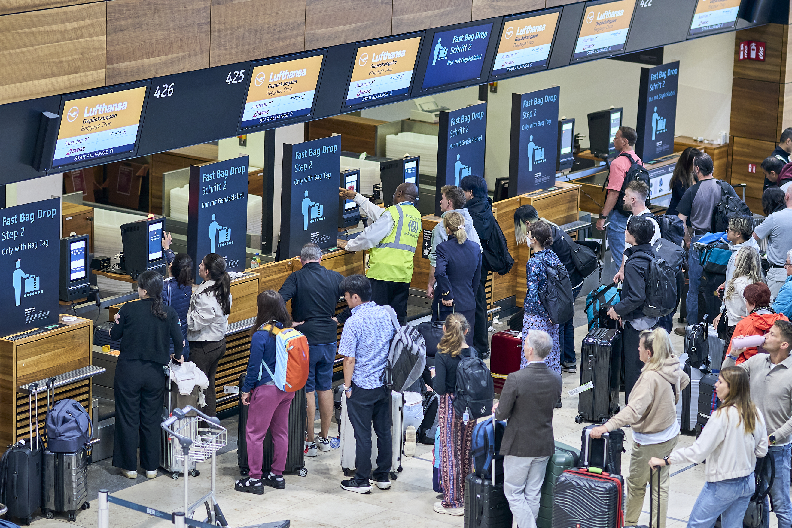 Já o aeroporto de Berlim segue sem ter os sistemas de check-in restaurados, e relata atrasos superiores a uma hora em partidas.