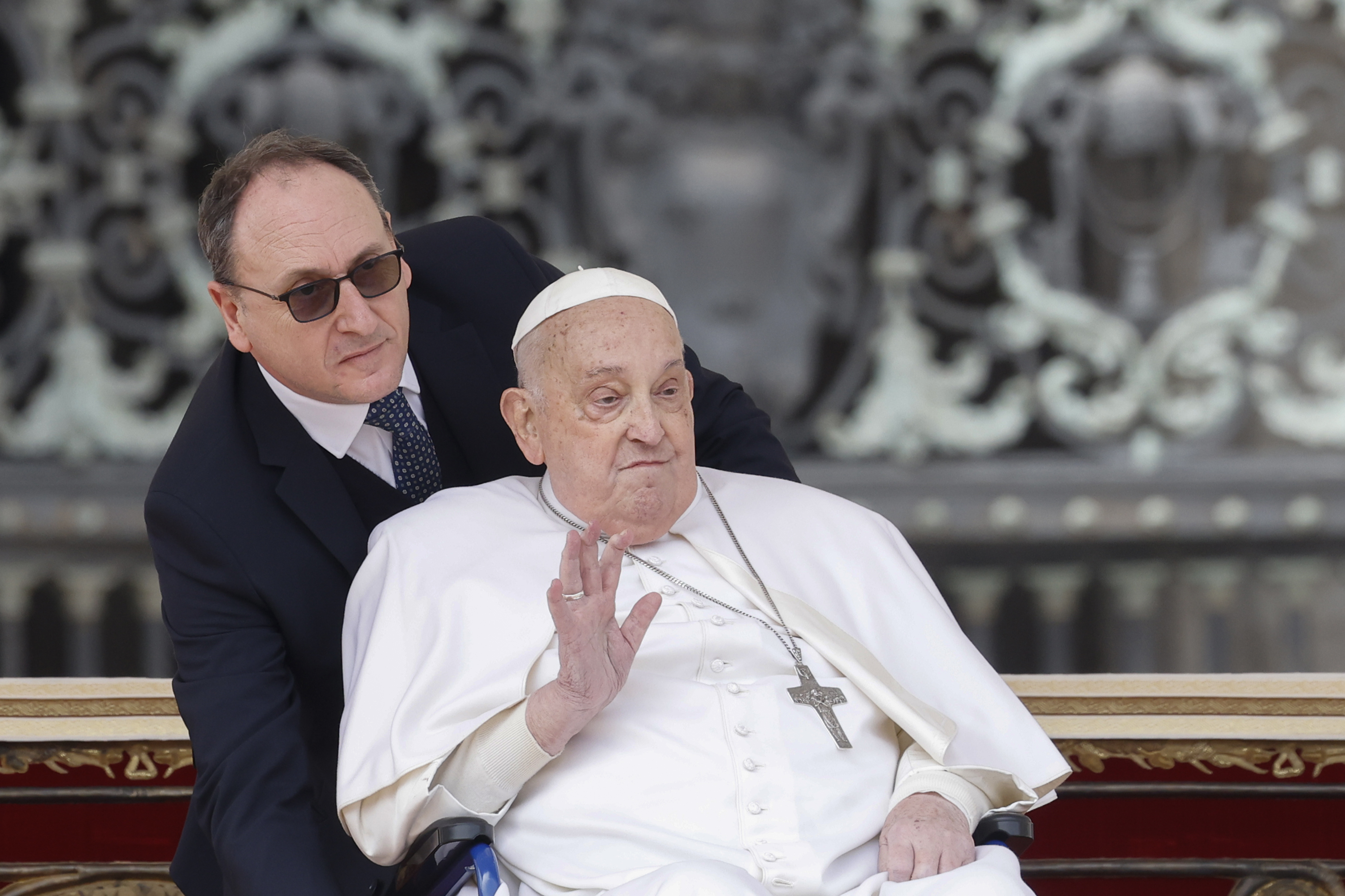 Pontífice agradeceu seu enfermeiro por incentivá-lo a percorrer a Praça de São Pedro no domingo para cumprimentar os fiéis e fez gesto de despedida