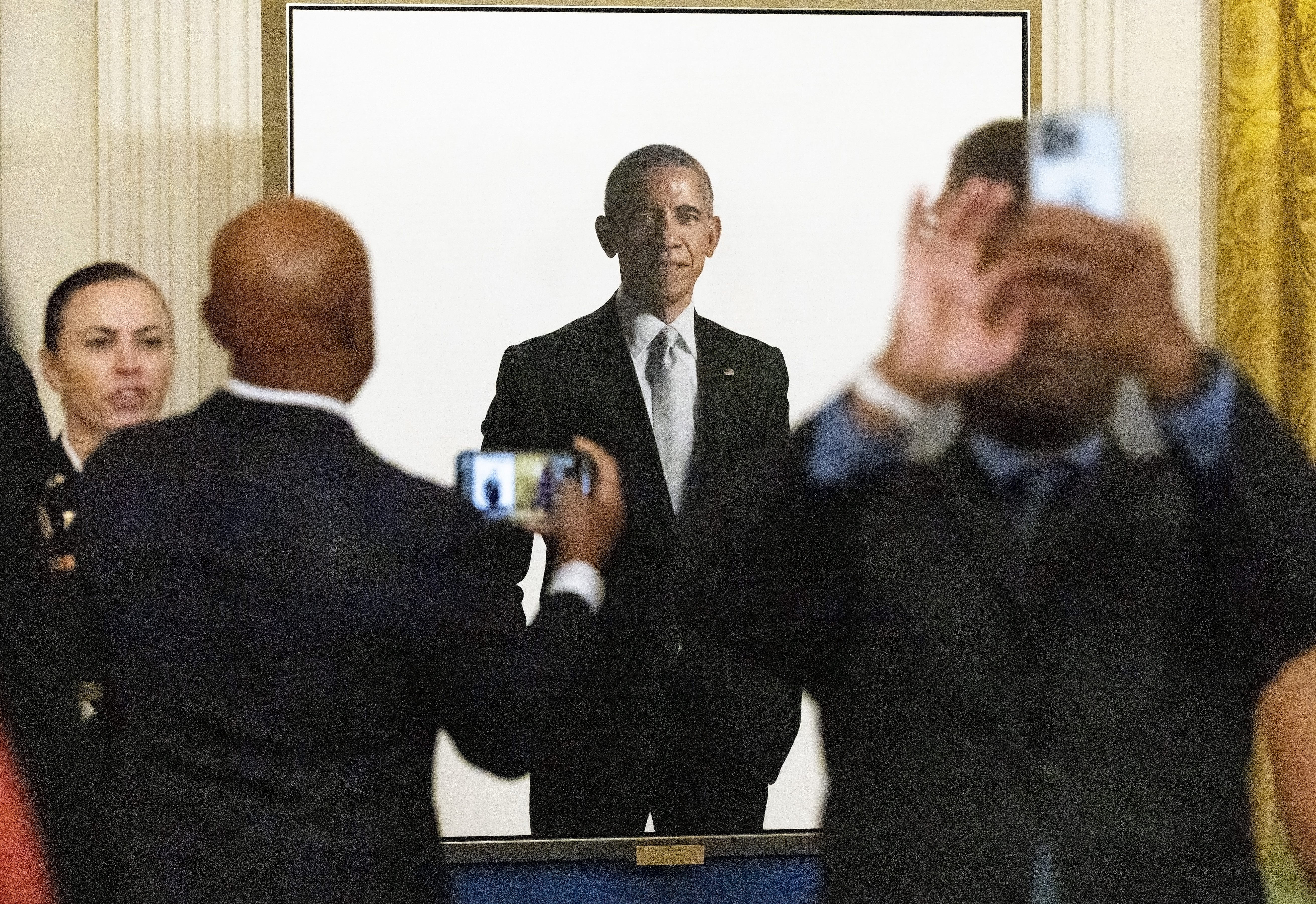 Por ordem do presidente dos Estados Unidos, Donald Trump, o retrato oficial do ex-presidente Barack Obama deixou de ocupar posição de destaque na Casa Branca. De acordo com a emissora americana CNN, a obra, que antes ficava no saguão principal, foi deslocada para o topo de uma escadaria isolada e restrita a membros da primeira-família, agentes do Serviço Secreto e poucos funcionários da residência. Os quadros do ex-presidente George W. Bush e de seu pai, George H. W. Bush, também foram removidos do local.