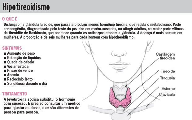 Fogo amigo – A principal causa do hipotireoidismo, especialmente em adultos, é uma inflamação crônica da glândula tireoide provocada pelo ataque de anticorpos contra o próprio órgão, chamada de tireoidite de Hashimoto. “Cirurgias no pescoço ou a retirada de nódulos na região também podem provocar a doença, mas não são tão comuns”, explica Meirelles.