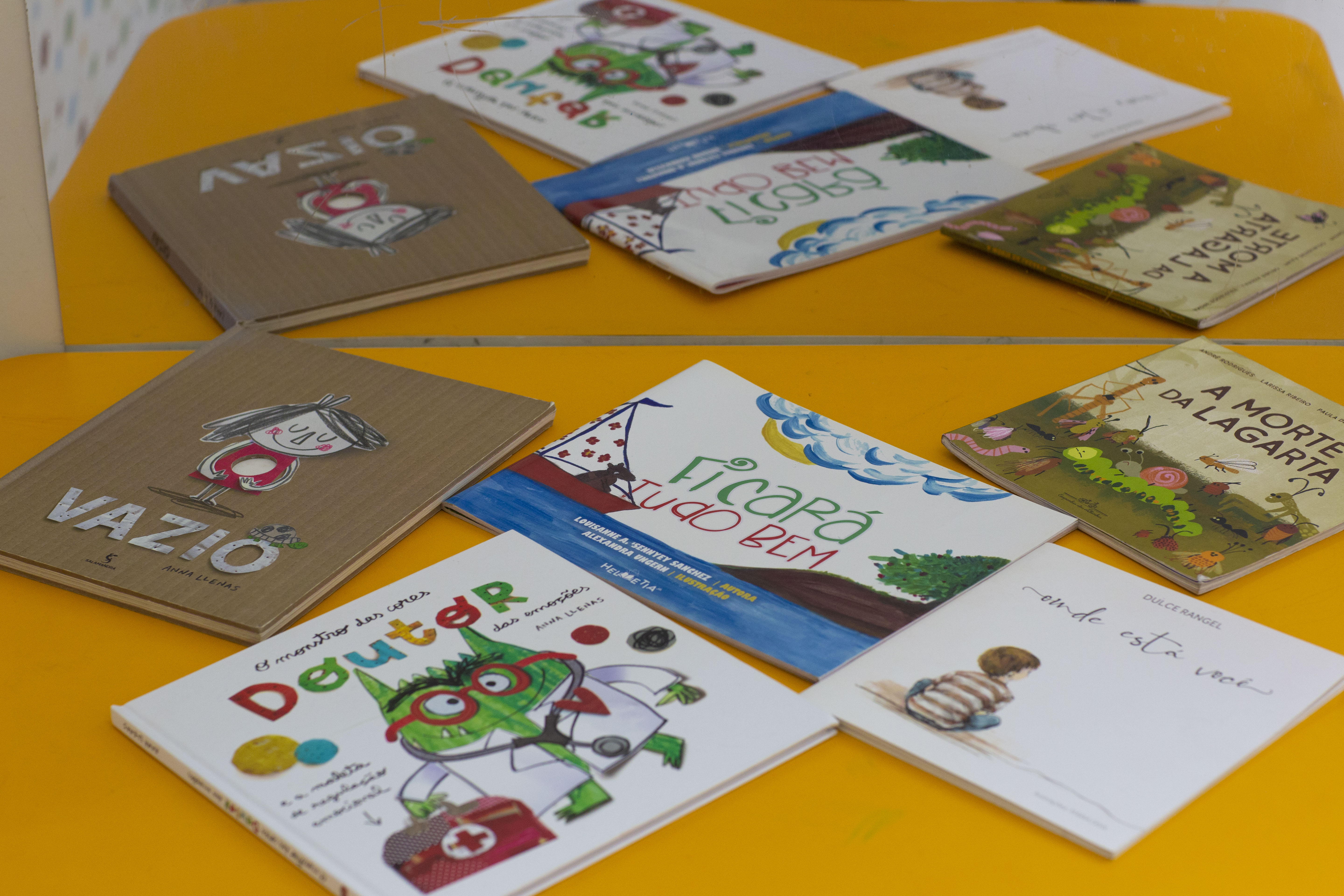 Apenas quando alguma porta se abre, raios de sol insistentes revelam artigos infantis: cadeirinha de plástico, mesinha e alguns itens lúdicos. Há livros que sugerem o tema de forma delicada e sensível ao alcance das mãos. Um dos corredores e outras salas abrigam armários que, quando abertos, exibem brinquedos adequados para diferentes faixas etárias e de acordo com a proposta adotada para abrir os caminhos para o diálogo.